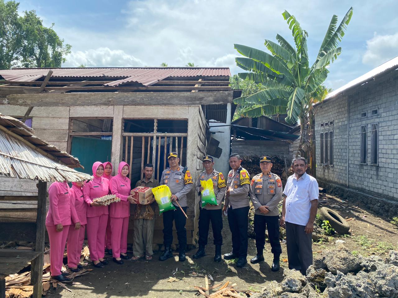 Sebagai bentuk kepedulian, Kapolres Pulau Morotai bersama PJU dan pengurus Bhayangkari Cabang Pulau Morotai tinjau lokasi warga yang terdampak, yaitu di Desa Towara, Kecamatan Morotai Jaya, Kabupaten Pulau Morotai. (Sabtu, 08/10/2025).