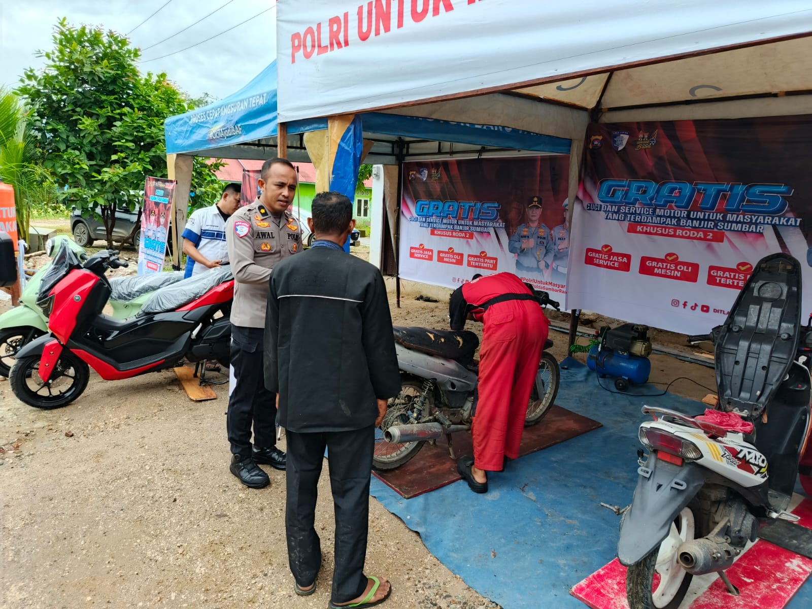 “Polri hadir untuk membantu masyarakat yang terdampak bencana. Melalui pelayanan servis kendaraan gratis ini, kami berharap dapat meringankan beban warga serta membantu memulihkan kembali aktivitas dan mobilitas masyarakat,” ujar Kombes Pol Erdi A. Chaniago.