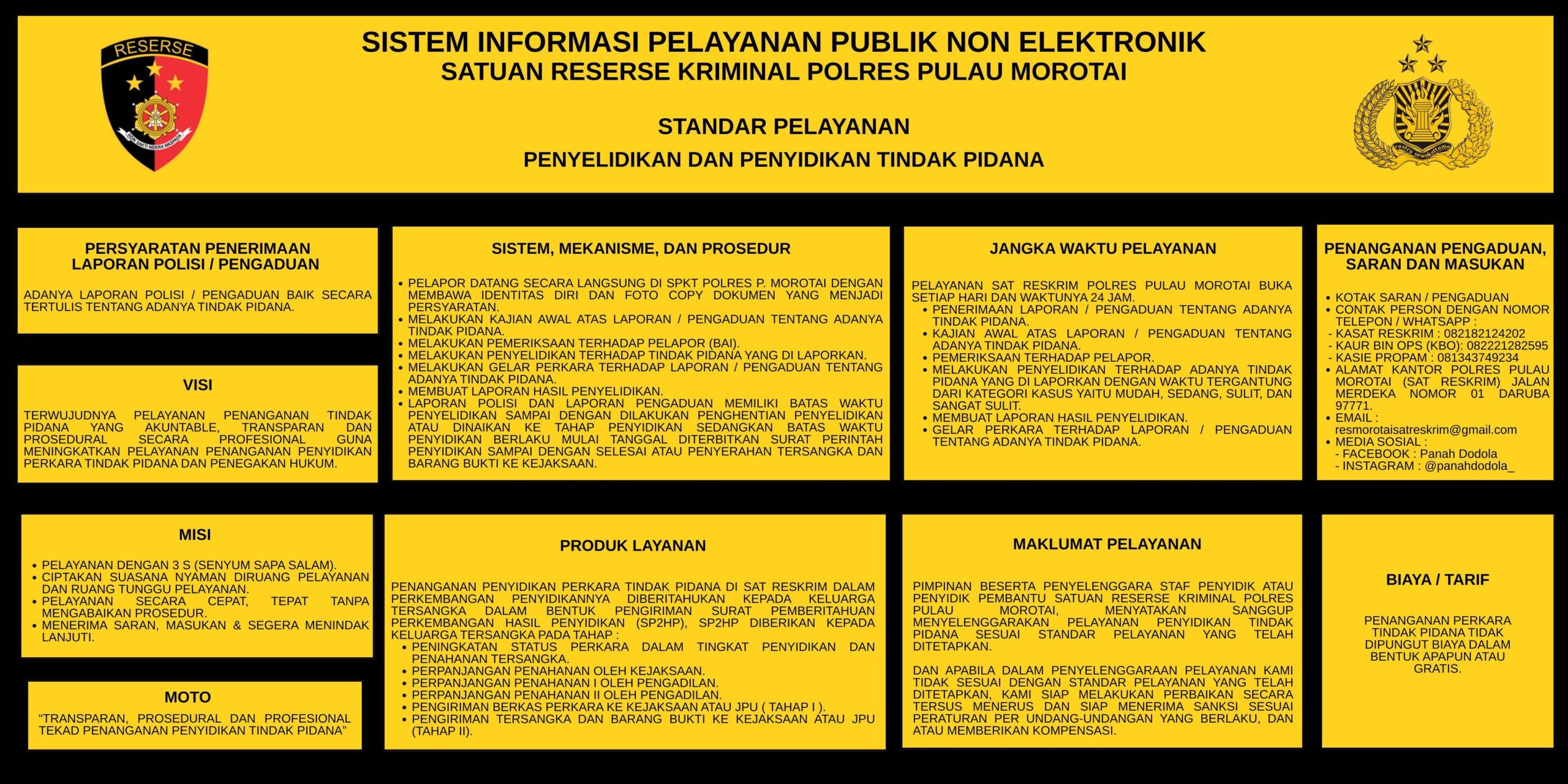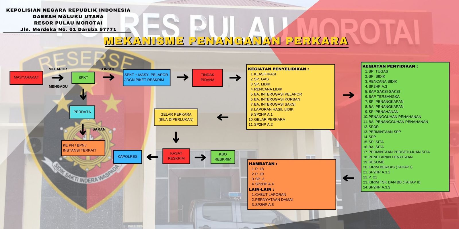 - penyelidikan dan penyidikan tindak pidana umum dan khusus, antara lain tindak pidana ekonomi, korupsi, dan tindak pidana tertentu di daerah hukum Polres.