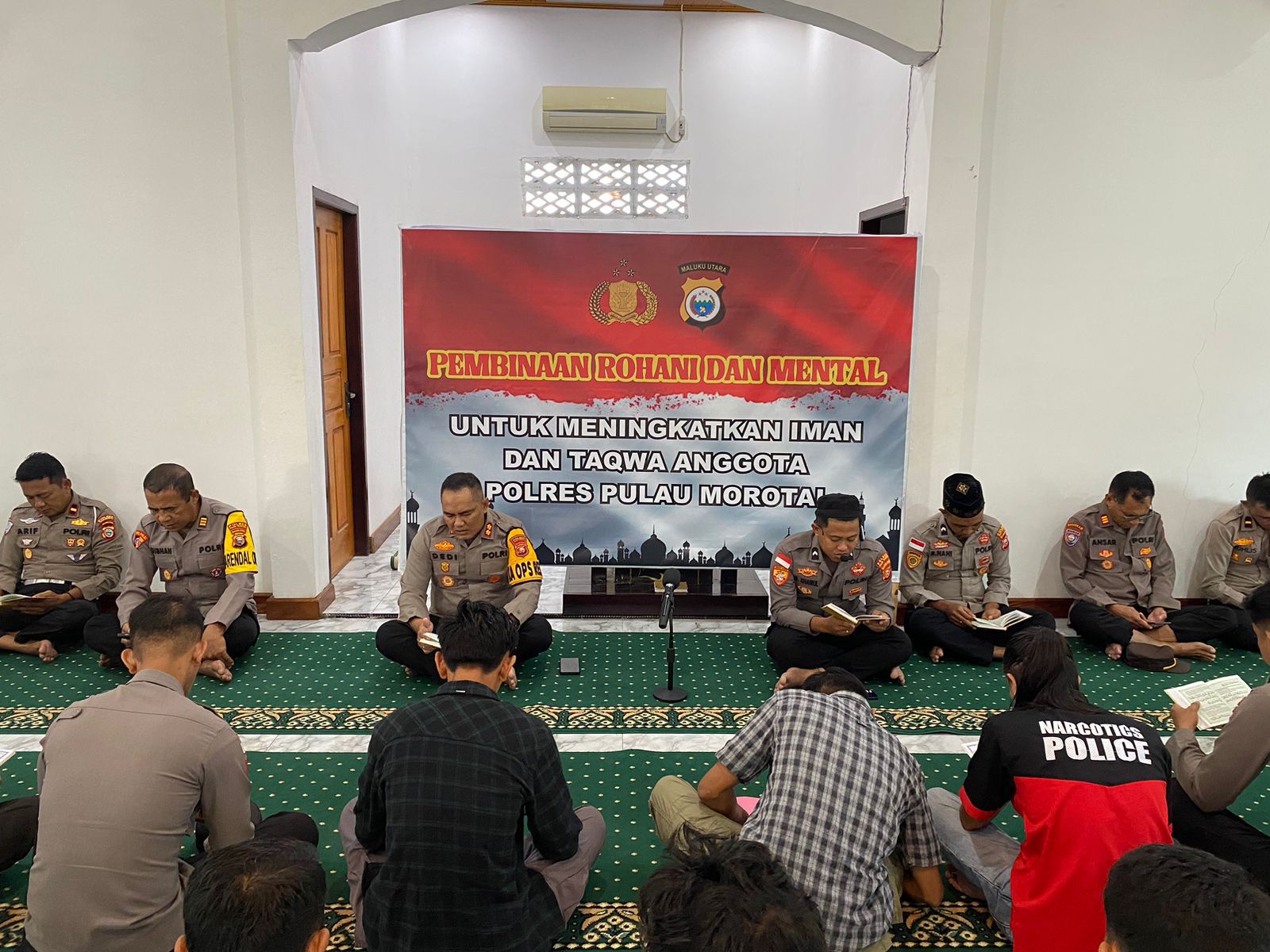 Kegiatan pembinaan rohani dan mental ini dipimpin langsung oleh Kapolres Pulau Morotai AKBP drh. Dedi Wijayanto, S.H yang bertempat di Masjid Al-Fattah Polres Pulau Morotai. (Kamis, 29/01/26).